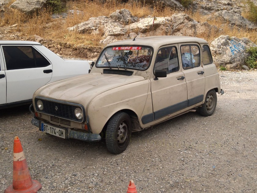 Renault 4, cu numere de Franţa, tocmai în Mesopotamia nordică, în preajma podului împăraţilor Severus şi Carcalla de peste râul Cendere. N-are legătură cu niciuna dintre maşinile recentului episod cu 7 maşini vechi.