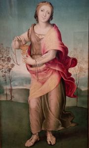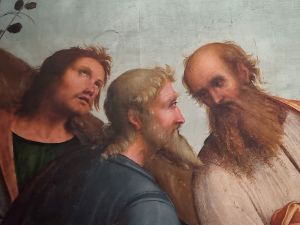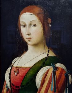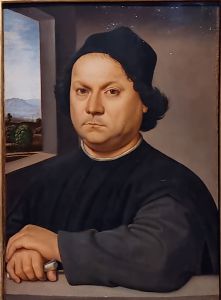 Alături de el, vedem două tablouri ale ucenicilor săi Rafael și Lorenzo Costa. Necunoscutul lui Rafael nu-mi inspiră simpatie, cu privirea lui dezaprobatoare de intelectual plictisit și artist neînțeles, nu mi-ar veni să intru în vorbă cu el.
