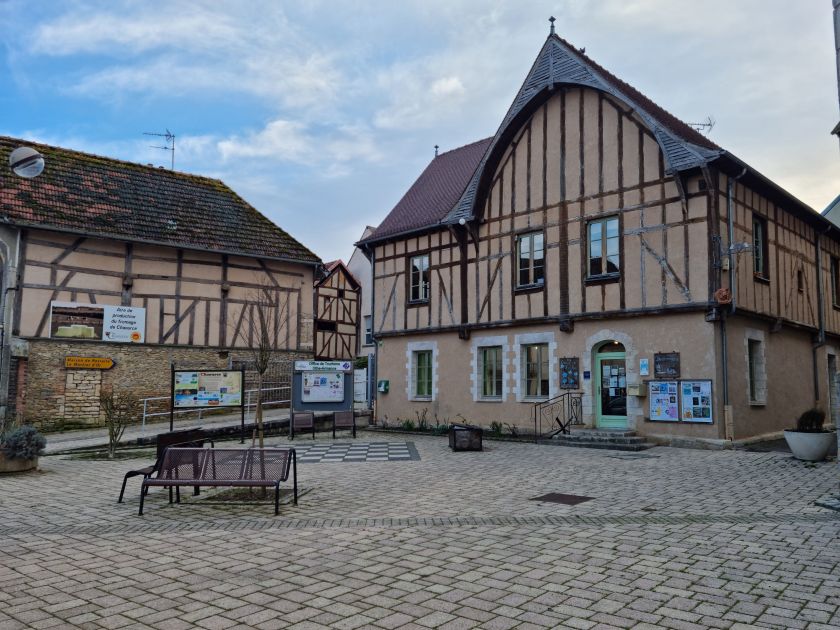 În jurul lăcașului, câteva case medievale din secolul 15 se sprijină cu tandrețe unele pe altele, în stilul rustic câmpenesc al regiunii Champagne, cu partea de sus în piatră, iar cea de jos de lemn.