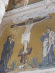 Pe ziduri, un mozaic pe fond de aur, diferit de perioada creativă anterioară, când fondul era simplu, albastru. În închipuirea noastră, toate aceste personaje își au locul în cer, nu scăldându-se în aur și mă întreb dacă această schimbare de concept artistic, de la abstracțiunea cerului la strălucirea materiei, marchează trecerea spre o altă filosofie, când aurul, cu toată sfera sa, de la alchimie la comerț, începe să ocupe tot mai mult loc în gândul omului.